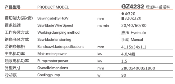 ·PLC可編程控制器,設(shè)定鋸切全過程的自動(dòng)程序。送料長(zhǎng)度采用光柵尺控制,送料長(zhǎng)度往返誤差±0.2mm;可一次設(shè)置五組鋸切參數(shù)。